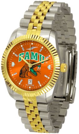 The ultimate NCAA Florida A M Rattlers fans statement our Executive timepiece offers men a classic business-appropriate look Features a 23KT gold-plated bezel stainless steel case and date function Secures to your wrist with a two-tone solid stainless steel band complete with safety claspP Read More..