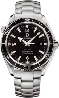 The Seamaster Planet Ocean from Omega delivers exceptional performance and great style both above water and below The solid steel case frames a black dial with luminous hands and markers for excellent visibility even in low light conditions a red-tipped luminous seconds hand and seconds indexes Read More..